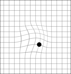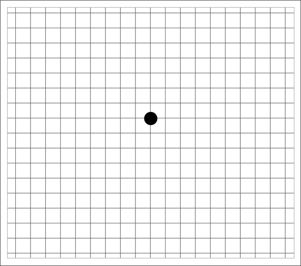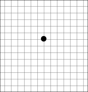- 2한쪽 눈을 가린 후 30cm 정도 거리에서 격자의 중심부에 있는 까만점을 바라봅니다.