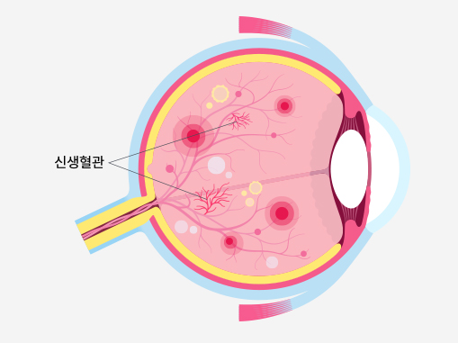 망막혈관을 보호하기 위해 주변에 비정상적인 신생 혈관들이 증식합니다.