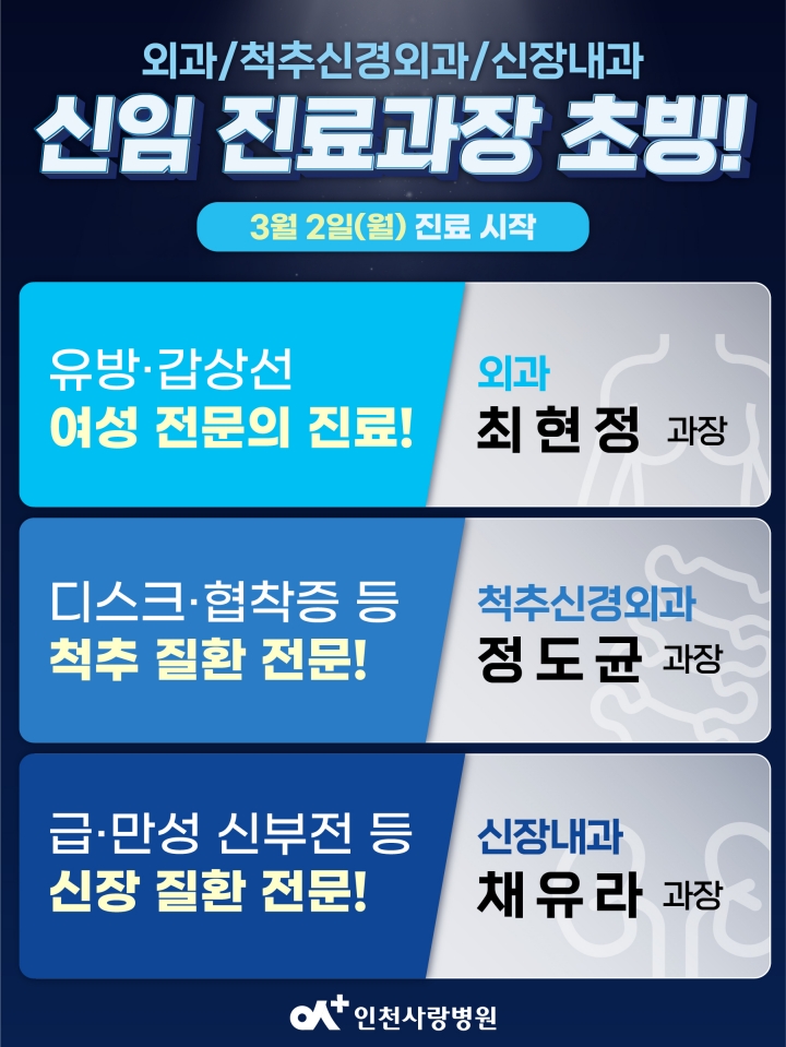 신임진료과장 3인은 3월 2일부터